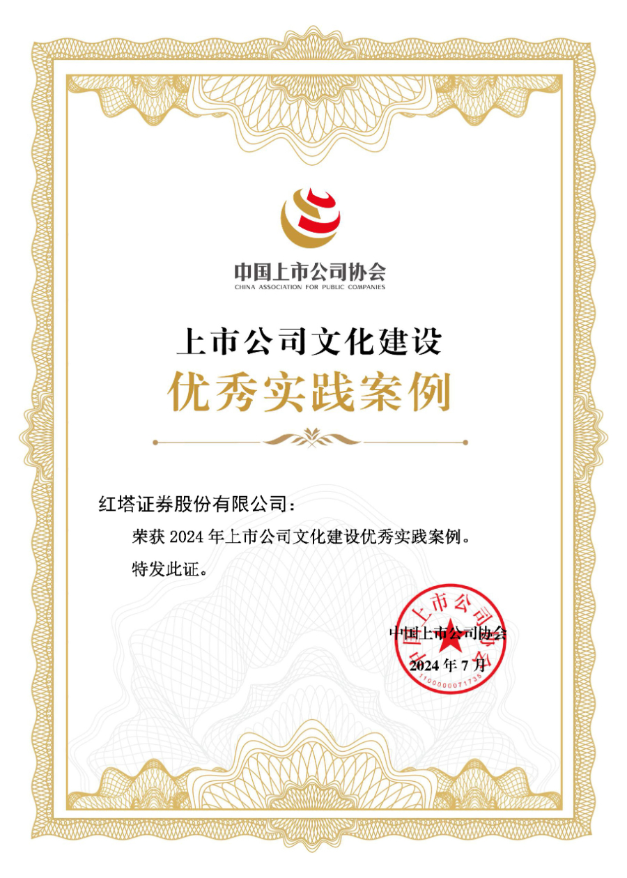 近日,中国上市公司协会发布2024上市公司文化建设最佳实践案例,红塔证券股份有限公司(以下简称“红塔证券”)入选。