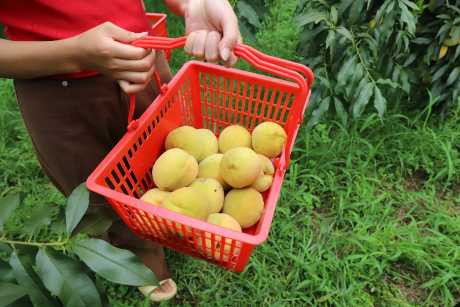 为了提升黄桃的产量、品质,当地统一引进栽种“锦绣”品种,平均亩产量可达3600斤。采摘高峰期时周边村民会前来帮忙,增加了就业机会。