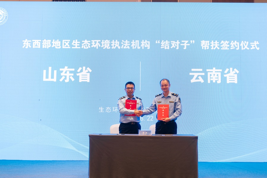 8月22日,生态环境部生态环境执法局在云南省玉溪市开展东西部省级生态环境执法机构“结对子”帮扶签约仪式。在所结对子中,山东省对口帮扶云南省,双方将重点围绕大案办理、生态环境保护执法大练兵、技术援助等方面展开合作。