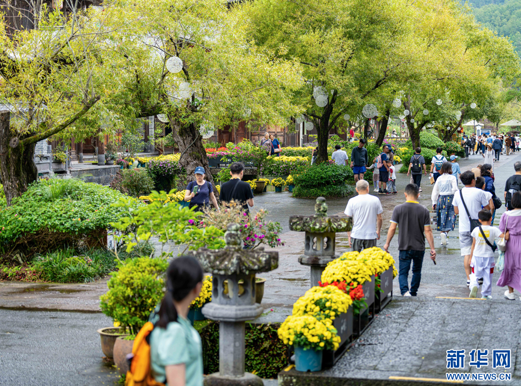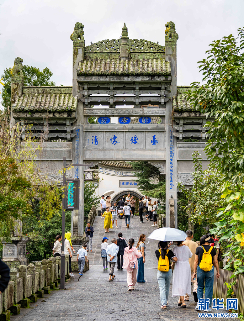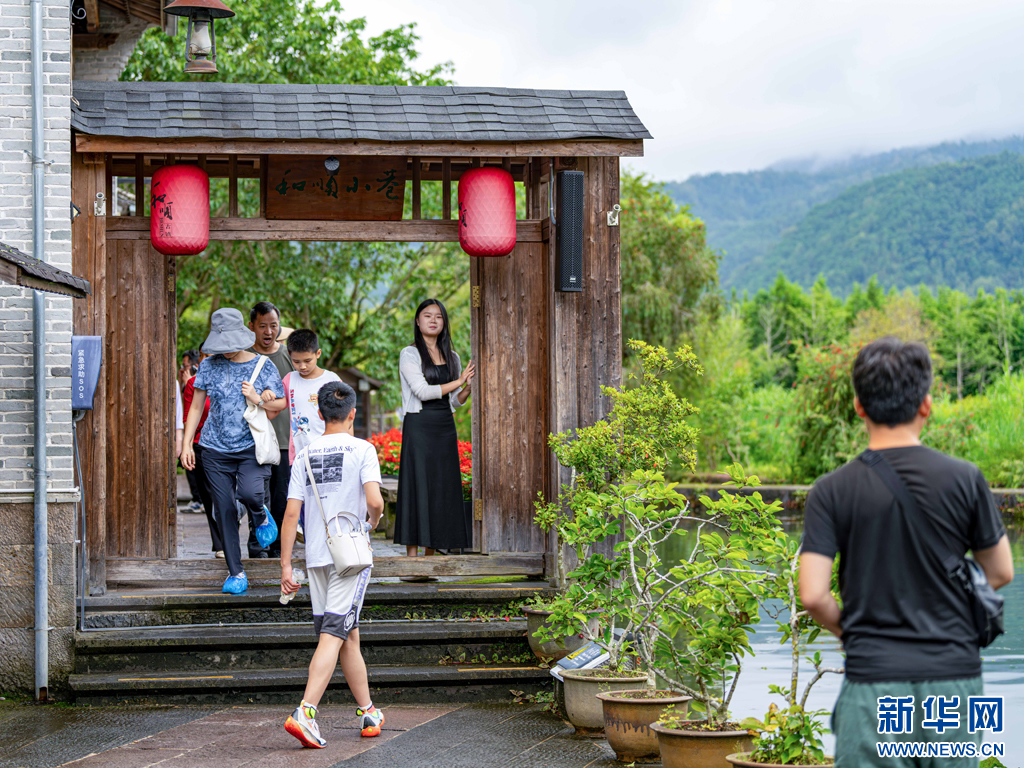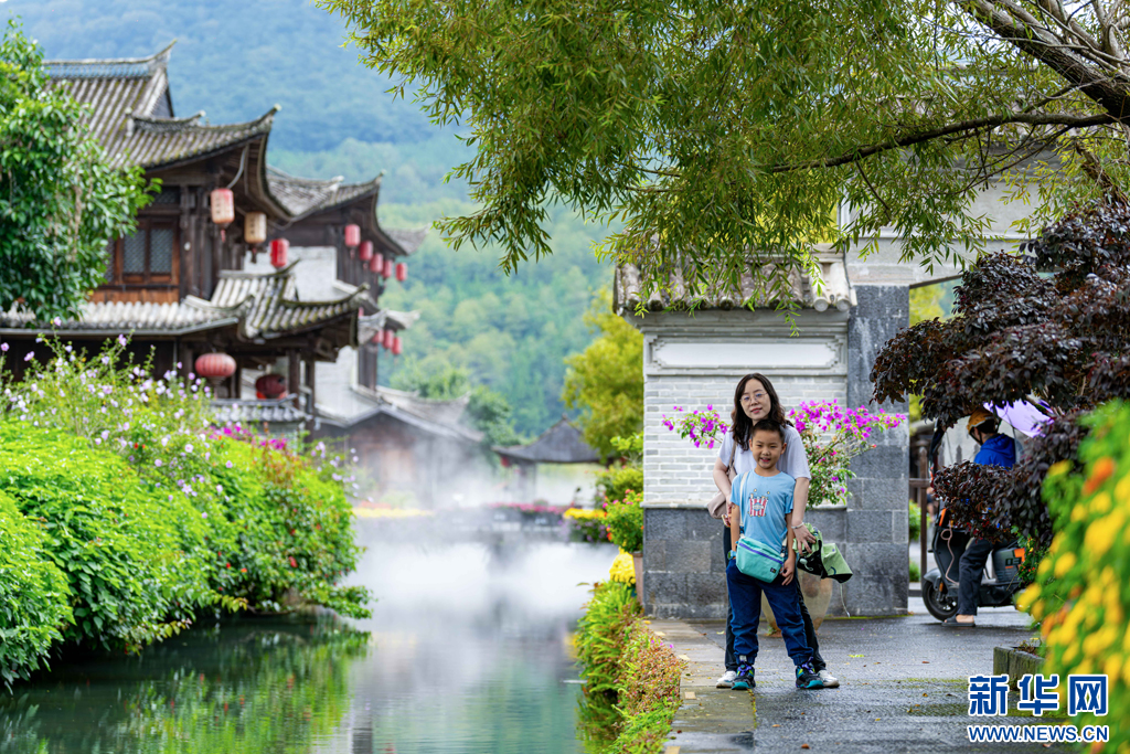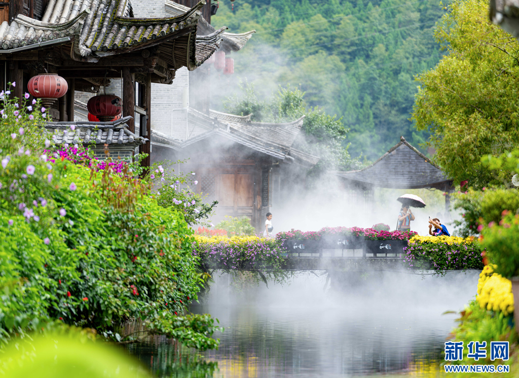 游客正在和顺古镇游玩打卡(8月11日摄)。新华网发(曾三东 摄)