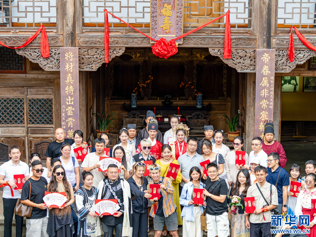 和顺古镇古典婚俗活动合影(8月11日摄)。新华网发(曾三东 摄)