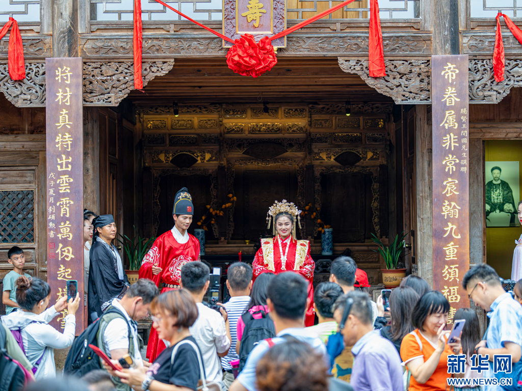 和顺古镇古典婚俗活动(8月11日摄)。新华网发(曾三东 摄)