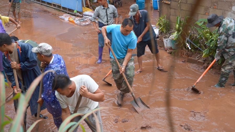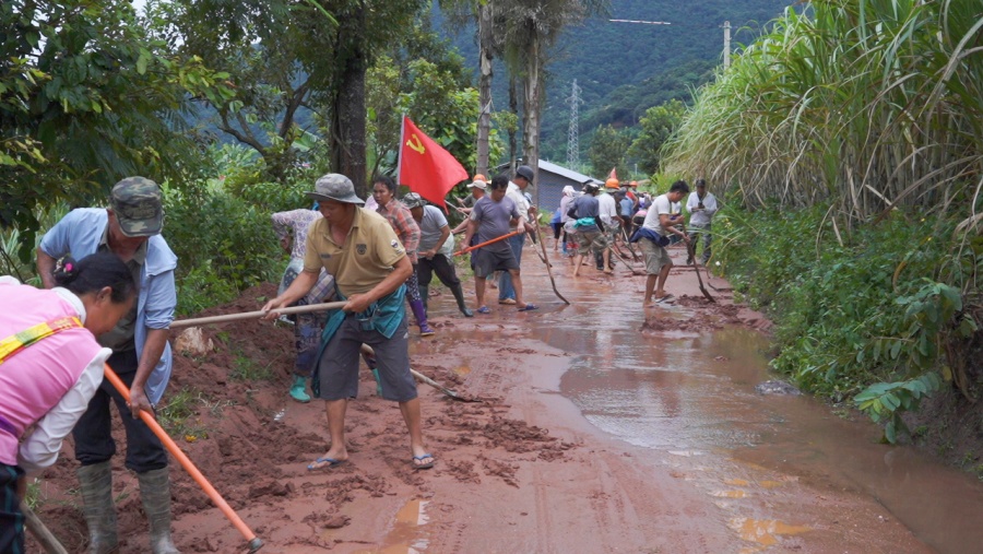由于强降雨天气和上游河道行洪等因素,孟连县勐马镇勐马村芒允村民小组人畜饮水水源损毁,多处房屋进水,甘蔗、水稻、花生等农作物不同程度受损。9月10日下午,芒允村民小组组长波混章带领群众第一时间清理路面淤泥,展开灾后恢复重建工作。“我们发动了80多名群众义务清理路面上的淤泥,修复受损路段,争取尽快恢复生产生活秩序,降低灾害造成的损失。”波混章说。