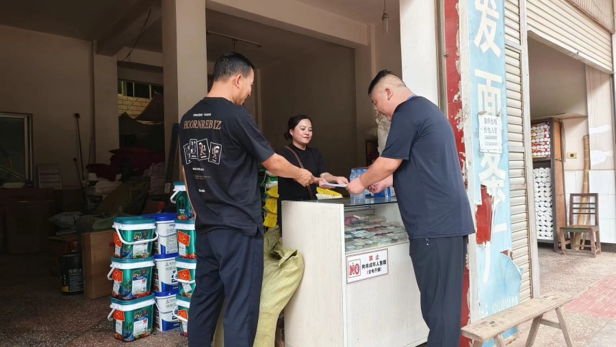 石屏县烟草专卖局工作人员送证上门(8月29日摄)。李楠 摄