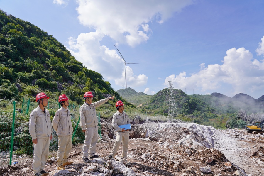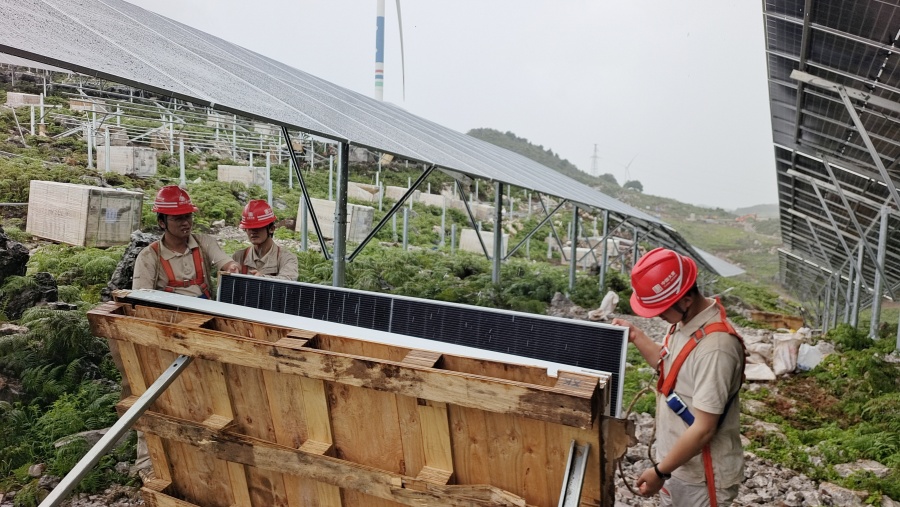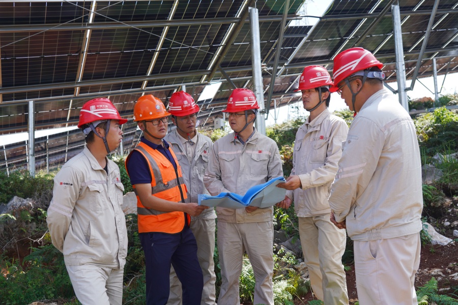 面对喀斯特地貌裸岩石地、施工跨度大、坡度陡、租地难度大、雨季施工等难题,项目团队组织专业技术人员开展管理创新和技术攻关,通过三维建模、结构设计、有限元分析等先进技术手段,精准把控项目建设中的关键节点、关键部位、关键设备,清单化安全管理、质量管理、进度管理、成本管理、合同管理,对组串结构进行模拟分析计算,不断优化场区支架设计。并基于项目申报多项发明专利、工法,在扎实开展“山地光伏绿色建造施工关键技术及应用”课题研究中快速协调、解决多项瓶颈问题,确保项目顺利推进。