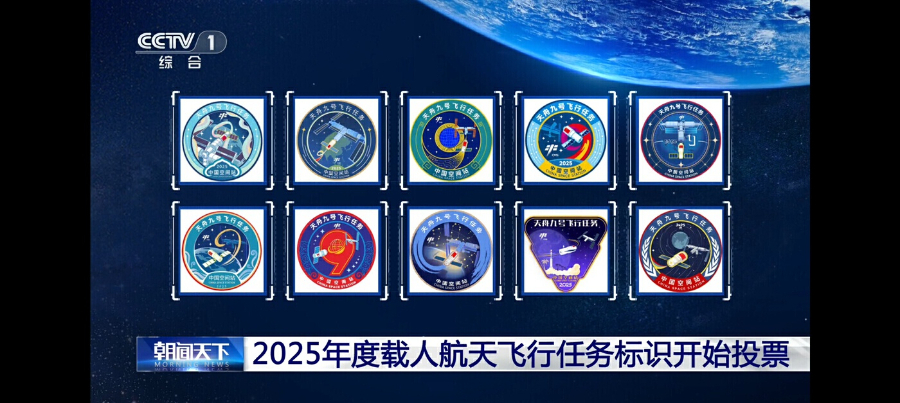 经初审,针对神舟二十号载人飞行任务、神舟二十一号载人飞行任务、天舟九号飞行任务等3次任务各遴选出标识候选方案10个,并进入网络投票阶段。