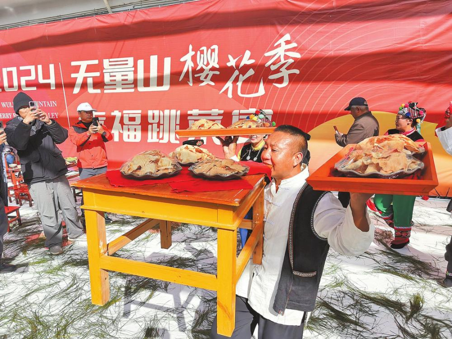 演员们为游客带来精彩的跳菜宴表演。 本报记者 段苏航 摄