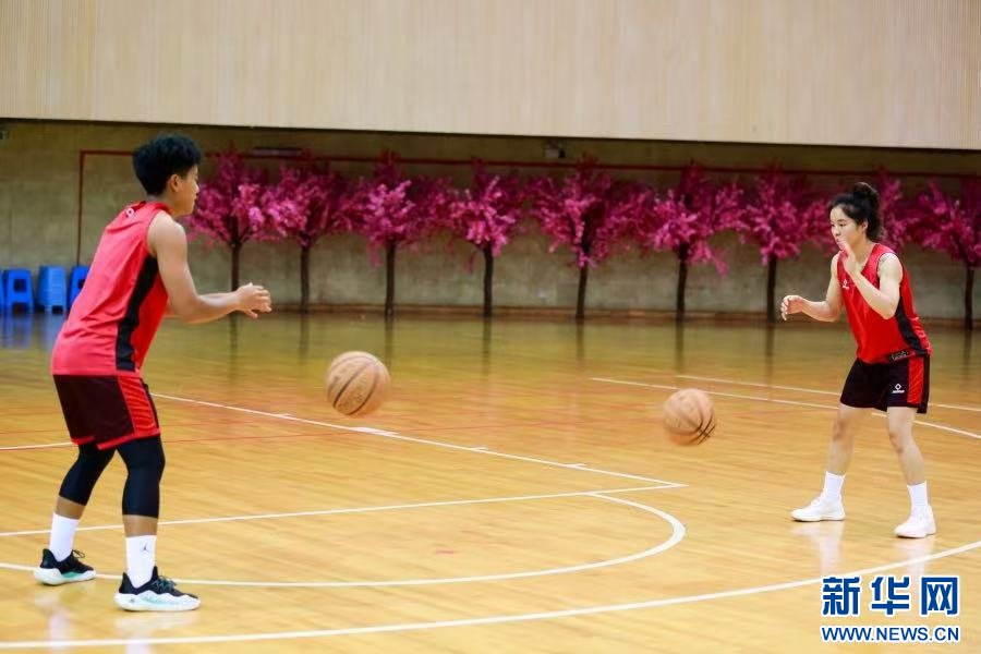 云南师范大学的女篮队员们正在训练(2024年6月25日摄)。新华网发(刘云 摄)