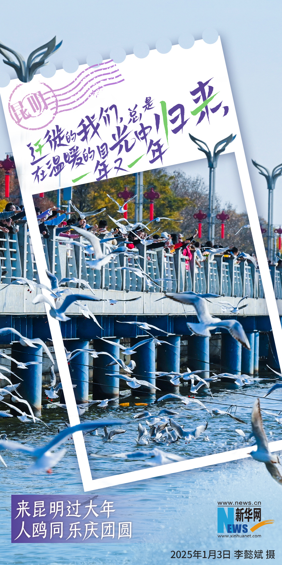 春节将至,来春城昆明赴一场特殊的约会,像这群小精灵一样旅居云南,体验鸥遇昆明的风姿韵味。当然,你也可以将拍摄到的红嘴鸥照片于2025年2月25日前发送至邮箱hongzuiou@vip.163.com,参与红嘴鸥摄影征集活动,将有机会获得“文创大礼包”。(完)