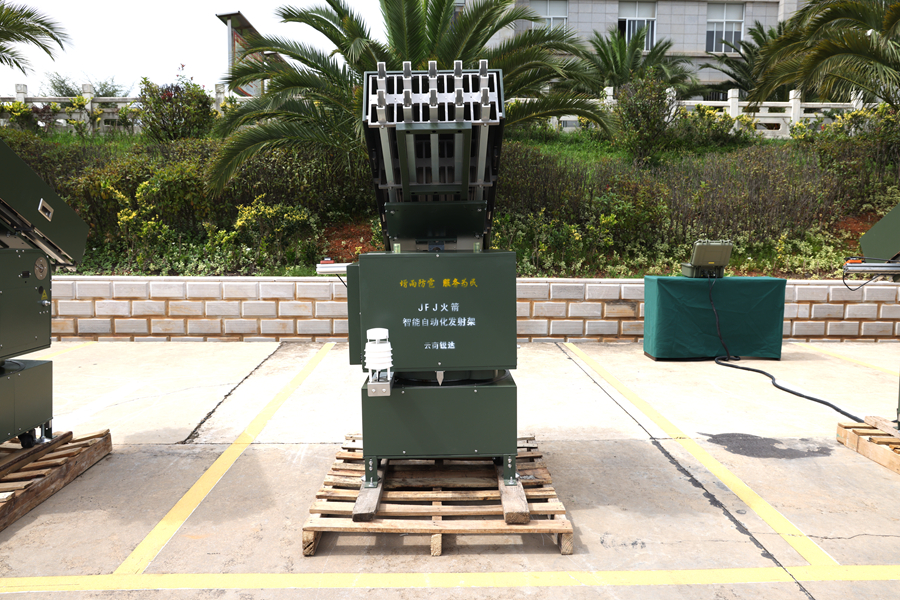 云南锐达民爆有限责任公司自主研发的JFJ火箭智能自动化发射架(2023年8月28日摄)。刘童 摄