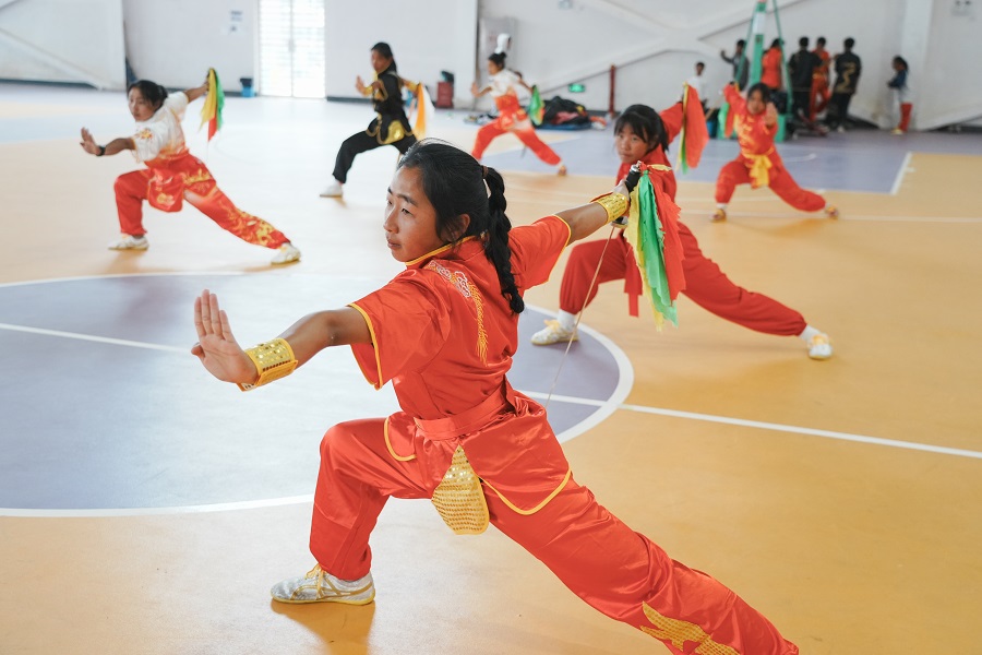 绿春县高级中学体育特长生在滇池学院训练(2月28日摄)。丁兆晨 摄