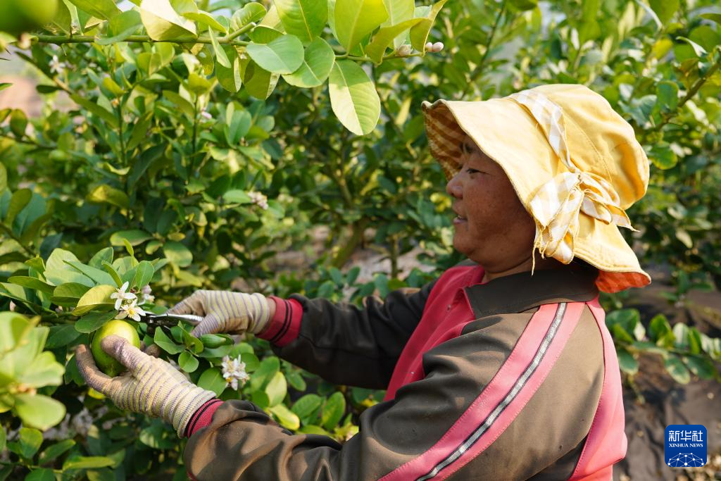 3月31日,在云南瑞丽勐秀乡户兰村的瑞垦巍小檬户兰香水柠檬高标准种植示范基地,果农采摘香水柠檬。新华社记者 高咏薇 摄