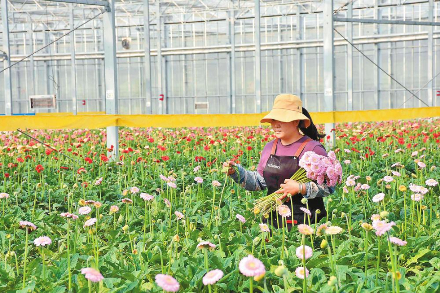 在云南西露斯园艺有限公司智能温室大棚里,各色非洲菊在透气栽培床上以标准间距整齐排列,花瓣在过滤后的自然光中舒展绽放,这静谧的生长韵律中暗含着精密算法的智慧选择——温室大棚顶部的环境调控中枢通过传感器实时采集光照强度、二氧化碳浓度等多项数据,经中央计算机运算后,自动调节遮阳、通风、灌溉等设备。这些由园区在建设初期统一部署的“智慧管理员”将鲜花生产周期精确到天,使每平方米大棚的产能和产值比传统温室分别增加2.5倍和3倍。