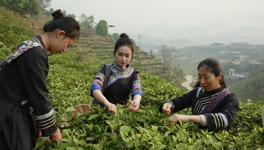 采摘春茶(3月31日摄)。杨逸尘 摄
