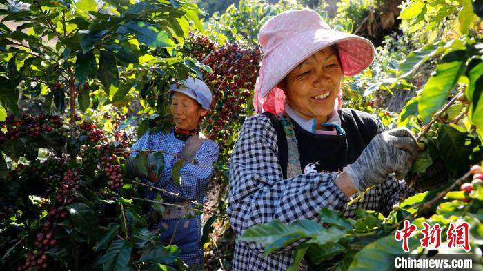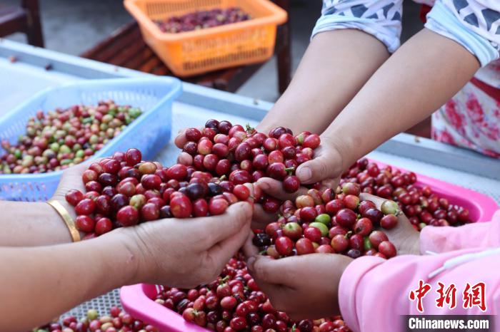 咖农采摘的咖啡鲜果。刘绍容 摄