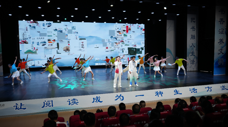 随着乐队合奏《九州同》激昂的旋律响起,仿佛将千年华夏文明的厚重与磅礴尽数展现,活动正式拉开帷幕。情景剧《书海逐梦新时代》中,学生们用生动的表演将校园中浓厚的阅读氛围与新时代少年对知识的渴望展现得淋漓尽致;国风舞蹈《诗书青韵》中,舞者们身着飘逸古装演绎出中华文化的独特韵味;情景剧《清澈的爱》,以排雷英雄的事迹为蓝本,让观众深刻体会到“忠厚传家久,诗书继世长”的深刻内涵;特殊人群带来的《世界赠予我的》则用独特的艺术形式,展现他们对世界的感知,传递出阅读给予他们的力量与温暖……一个个精彩纷呈的节目为观众带来一场视觉与文化的双重盛宴,赢得书友们阵阵掌声。