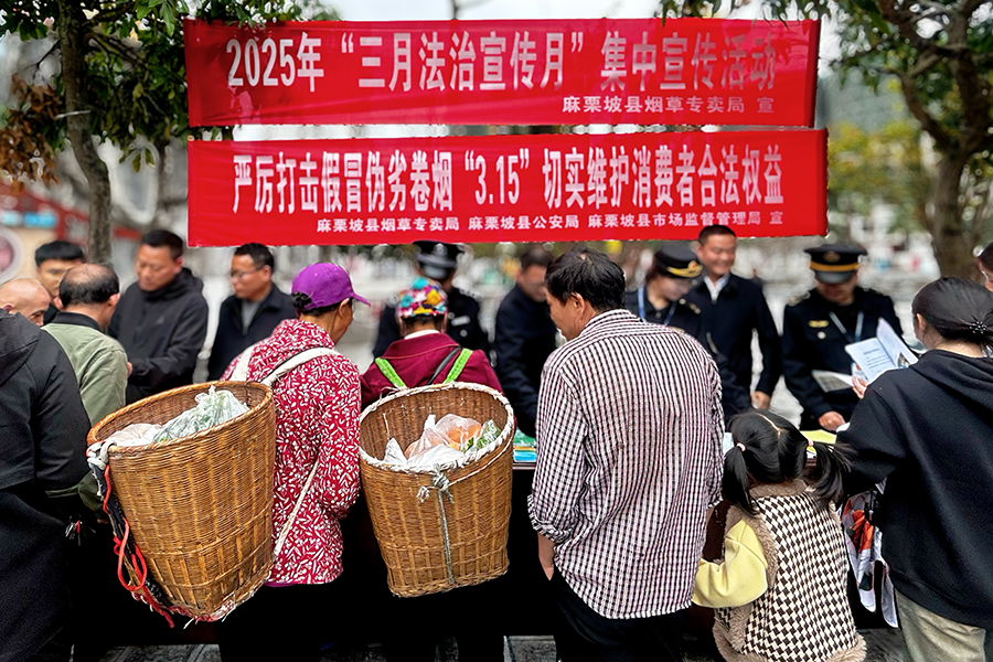 麻栗坡县烟草专卖局联合公安、市场监管部门开展“3·15”普法活动现场(3月15日摄)。