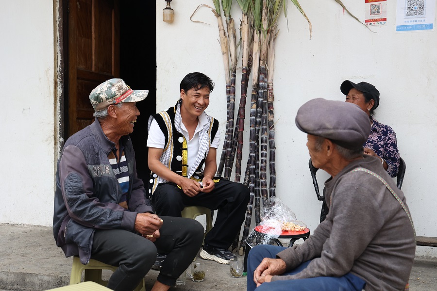 “火塘文化”体验屋里,领头男主唱叫乔大华,是排路坝村党总支副书记,也是泸水阳坡乡旅民宿乡村旅游发展专业合作社总经理。