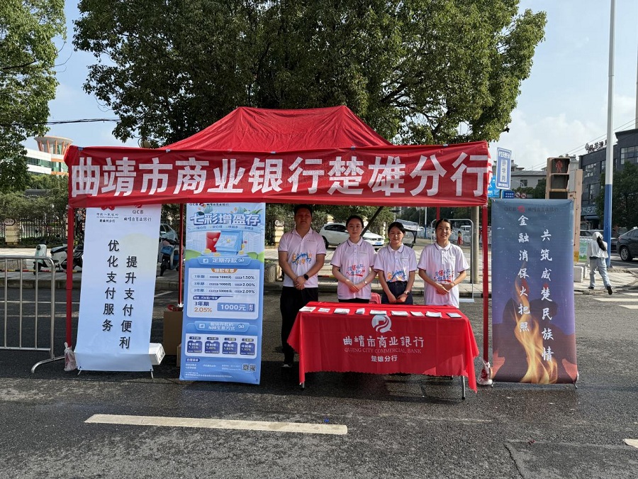 曲靖市商业银行楚雄分行宣传点(7月13日摄)。