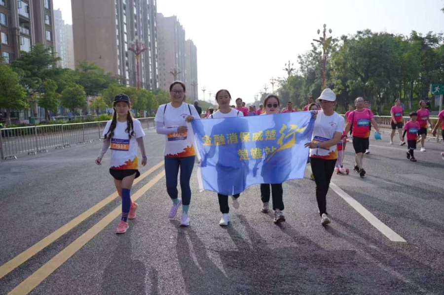 由曲靖市商业银行、太平财产保险有限公司等多家金融机构工作人员组成“金融领跑员”,身着印有普及金融知识、反诈防骗标语的消保运动服参加马拉松比赛,形成一道亮丽的金融知识风景线。