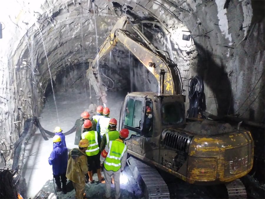 面对一系列难题,水电十四局组建包保领导小组、工作专班及党员先锋队、青年突击队、工人先锋号三支攻坚队伍,锚定技术创新突破。通过落实“新技术、新材料、新设备、新工艺”应用,水电十四局创新采用地面“L”型定向钻孔预注浆技术,提前对目标洞段实施堵水控制与围岩加固;结合洞内超前灌浆工艺、材料及施工工法创新,成功实现石灰窑断裂带的安全穿越,彻底破解施工困局。