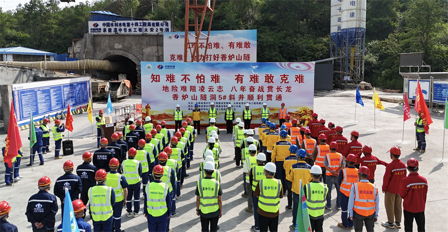 香炉山隧洞5号施工支洞顺利贯通(7月18日摄)。