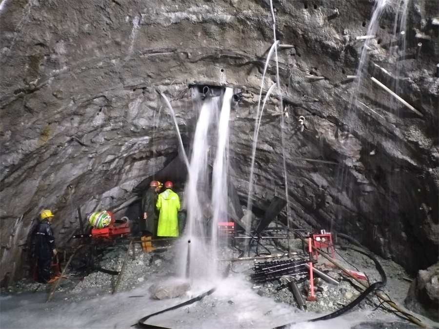 自2017年10月26日启动施工以来,该支洞始终与复杂地质条件“硬碰硬”。隧洞轴线周边分布5条断裂带,需直接穿越石灰窑断裂和清水江岩溶水子系统,面临埋深大、围岩全为软弱破碎的Ⅴ及Ⅳ级岩体、地下水丰富、外水压力高等多重挑战。其中,富水条件下碎粉岩堵水加固、碎裂岩大流量动水快速堵水、软岩大变形处置等难题,均属国内罕见,一度让施工陷入“寸步难行”的困境。