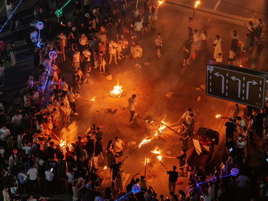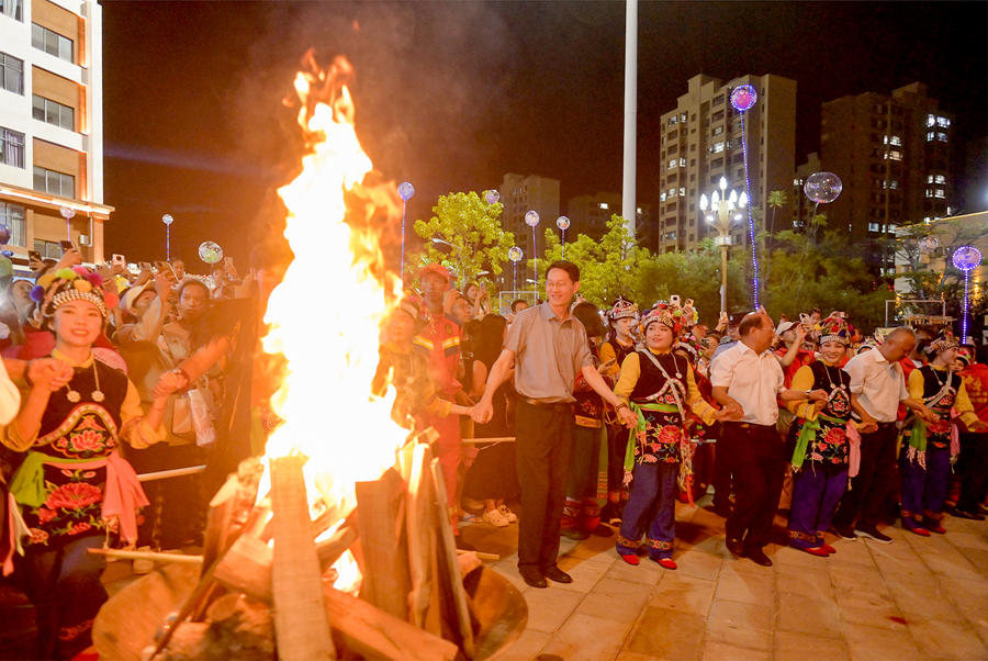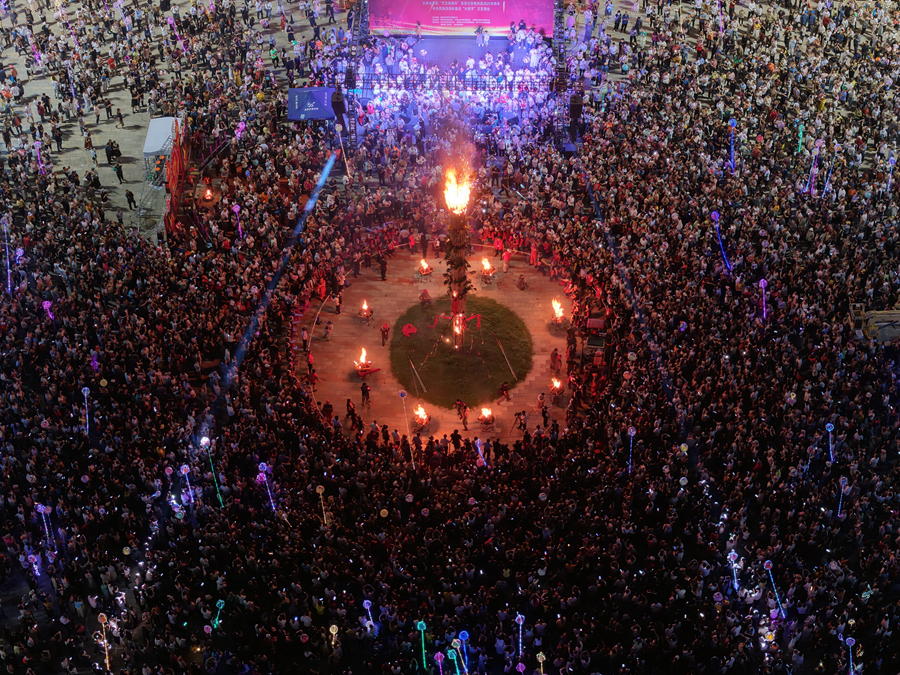 7月19日晚,“相约无量山 狂欢火把夜”主题活动之一——南涧火把节祭火点火仪式在云南省大理白族自治州南涧彝族自治县举行。从南涧县8个乡镇赶来的各族群众以及四面八方汇聚而来的宾客,共同见证了这个饱含丰收和喜悦,充满对幸福和美好生活向往的祭火点火时刻,以此开启一年一度火把节的狂欢之旅。(完)