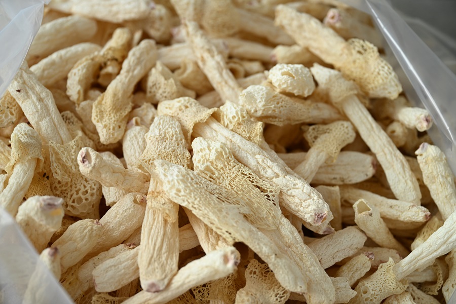 烘干后的竹荪(8月6日摄)。