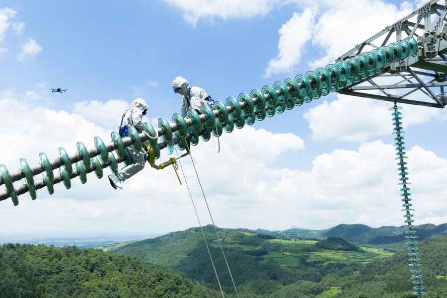 据悉,迎峰度夏期间电网安全运行面临严峻考验,带电作业成为保障电力稳定供应的关键手段。此次消缺的两条±500千伏直流线路承担着重要输电任务。面对高空、高压、高温的复杂作业环境,作业人员严格遵守安全规程,凭借过硬的技术功底和默契的团队协作,精准高效地消除了5基铁塔的缺陷。整个作业过程安全、平稳、有序,降低了对电网运行的影响,避免了计划停电带来的负荷损失。