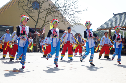 每逢周末节假日,可邑小镇的广场便成了欢乐的海洋。三弦声响起时,身着彝族阿细服饰的村民与游客手拉手跳起欢快的舞步。“跳月”的圆圈越转越大,不同语言的欢声笑语交织成一片欢乐的海洋。