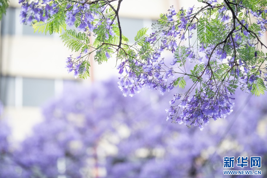 昆明教场中路盛开的蓝花楹(资料图)。新华网发(赵益 摄)
