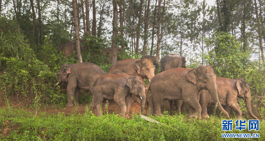 生活在云南的野生亚洲象群(7月1日摄)。新华网发(周晨浩 摄)