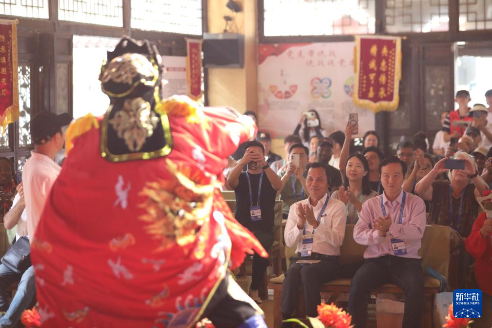 与会嘉宾在昆明官渡古镇观看滇剧(9月7日摄)。新华社记者 王安浩维 摄