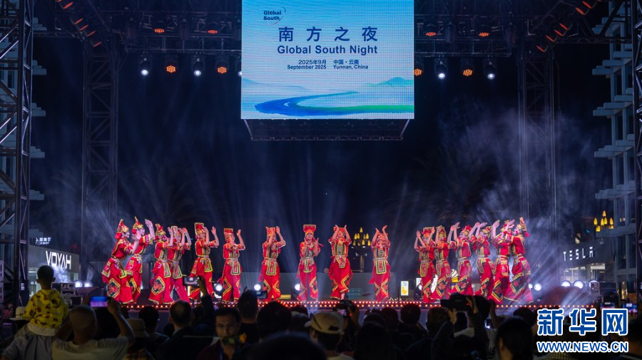 9月5日晚,2025全球南方媒体智库高端论坛“南方之夜”活动在云南昆明举行。活动舞台设立于昆明公园1903标志性建筑凯旋门之下,商圈内璀璨的灯光、国际化的品牌、时尚的年轻人与舞台上多个国家的精彩歌舞表演交相辉映,经济、文化在此交融互动。