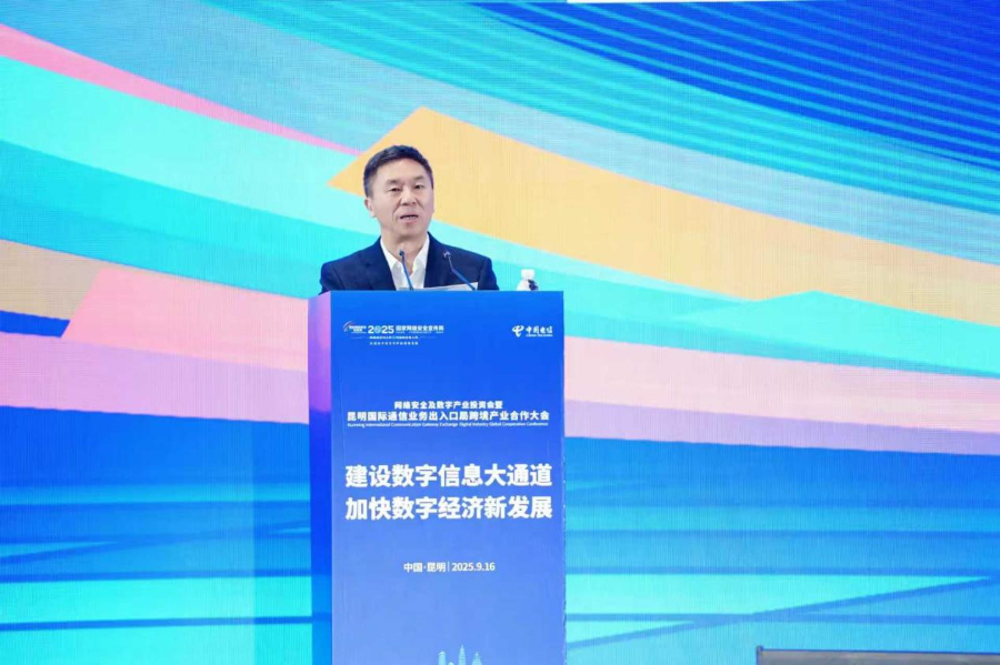 9月16日,在2025年国家网络安全宣传周期间,网络安全及数字产业投资会暨昆明国际通信业务出入口局跨境产业合作大会在昆明举办,中国电信总经理刘桂清出席会议并致辞。