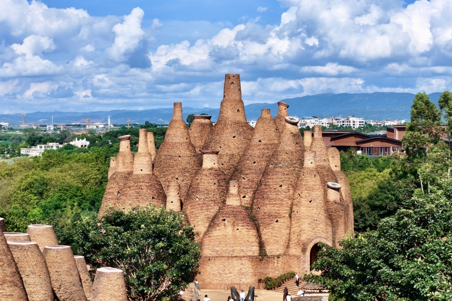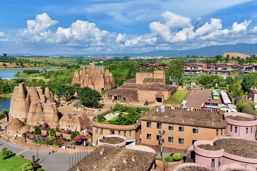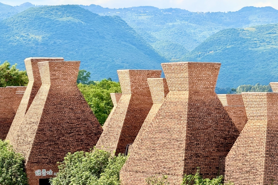 红砖建筑是东风韵国际康养旅游度假区的一大特色。整个建筑群没有使用一根钢筋,仅用本地红砖建起了一座座城堡,别具匠心。牛哆啰、半朵云、万花筒艺术馆等代表性建筑,每一幢都拥有独特造型和生命力。其中,万花筒艺术馆外形如一堆红酒瓶,随光影变化,内部空间更随着阳光照射角度呈现出不同光影之美。漫步在东风韵国际康养旅游度假区内,采风团能感受到建筑与自然完美融合的诗意场景,每一处细节都散发出生活与艺术交织的韵律。