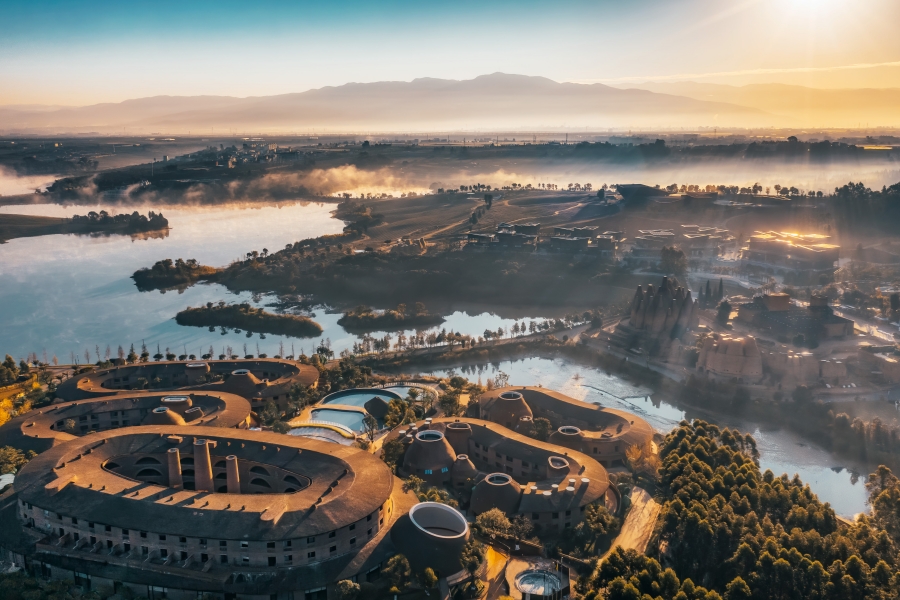 东风韵国际康养旅游度假区特色建筑群(摄于9月18日)。新华网发(供图)