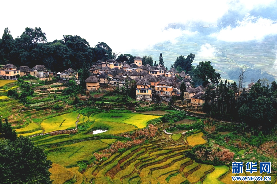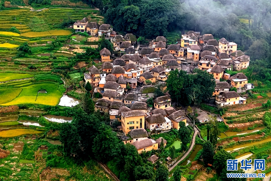 阿者科村的传统蘑菇房与梯田构成和谐画卷(资料图)。新华网发(红河州文化和旅游局 供图)