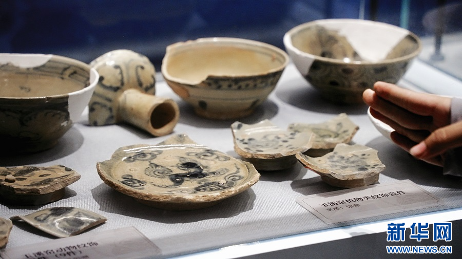 玉溪窑址博物馆展出的青花瓷片(9月16日摄)。新华网发(郭云森 摄)