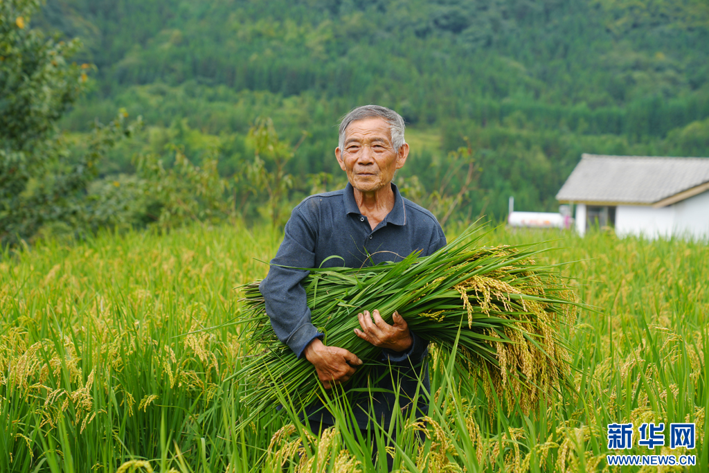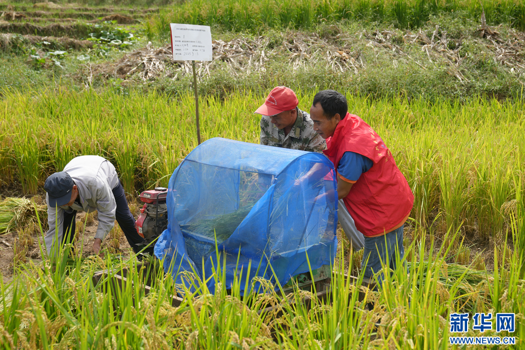 威信县旱地优质稻示范种植测产现场(9月18日摄)。新华网发(威信县融媒体中心 供图)