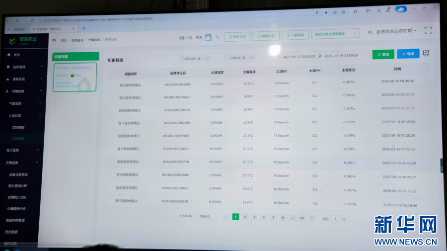 “智慧云农”平台后台农情数据(9月19日摄)。新华网发(刘云 摄)