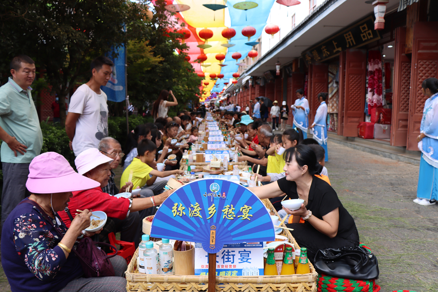 9月21日,云南省大理白族自治州弥渡县推出“一节一赛”以来的第九场长街宴——极具特色的“小河淌水弥渡乡愁宴”,迎接八方宾朋,让跑友与游客在赛事之余,品味弥渡味道。