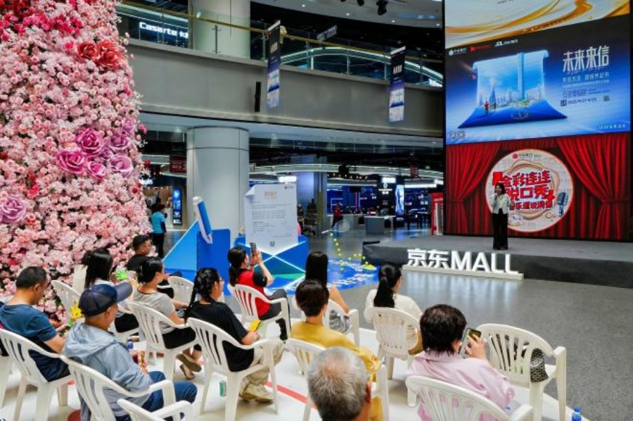 仪式结束后,活动现场变为互动体验乐园。市民在“未来来信”主题装置书写对未来生活的期待,中信银行工作人员借机讲解“每笔合理消费都是对未来的投资”,引导家庭树立积极财务规划意识;京东MALL设置的VR游戏区吸引年轻人畅享虚拟体验,而化妆与洗衣体验区则聚集了大量中老年市民,让大家在动手实践中感受智能消费的便捷。