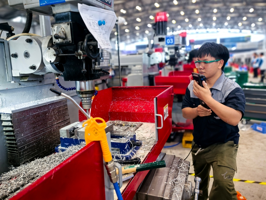 工业机械(世赛选拔)项目铜牌选手陈建刚比赛现场(9月22日摄)。