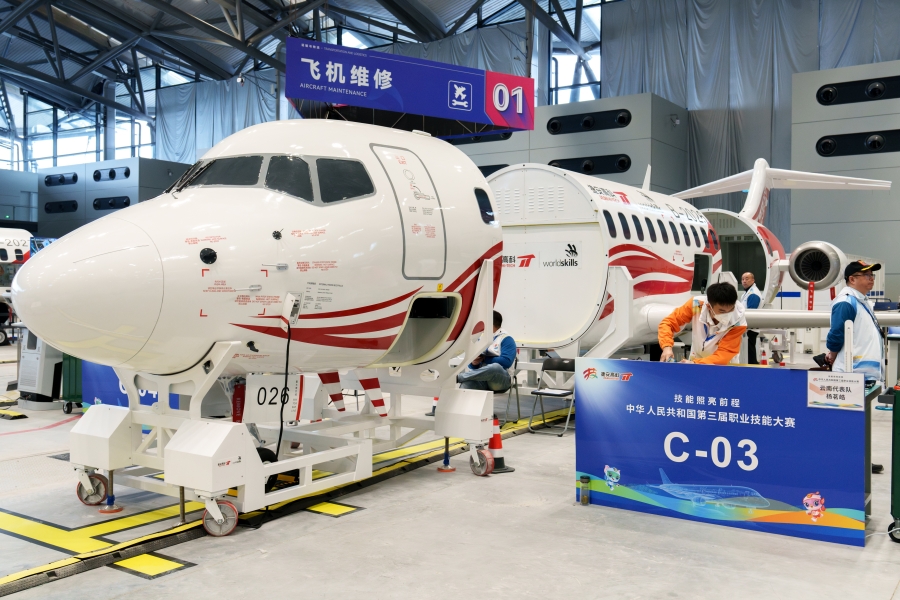飞机维修(世赛选拔)项目铜牌选手杨茗皓比赛现场(9月22日摄)。