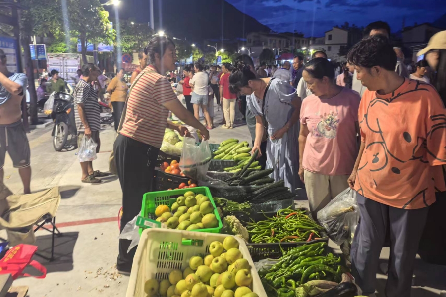 居民们来到夜市购买蔬菜(9月12日摄)。罗雪 摄