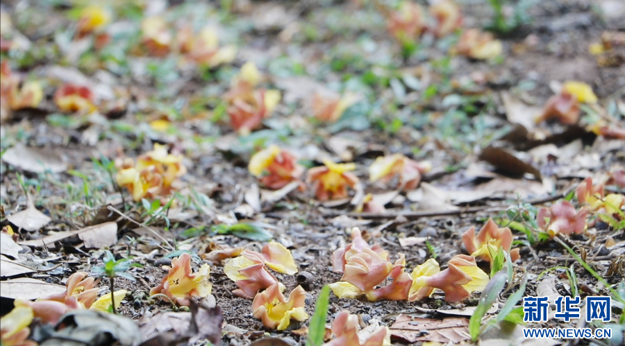 掉落的云南石梓的花朵(资料图)。新华网发(张鹏 摄)