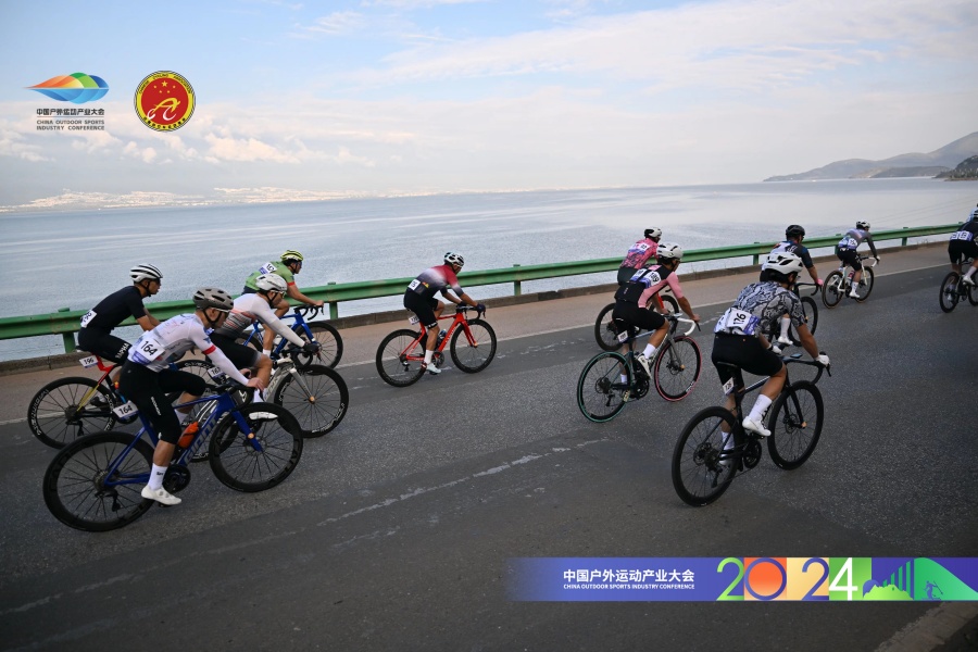2024中国户外运动产业大会大理环洱海自行车赛(2024年10月27日摄)。