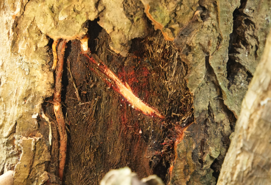 “受伤”后的海南龙血树(7月6日摄)。新华网发(徐华陵 摄)